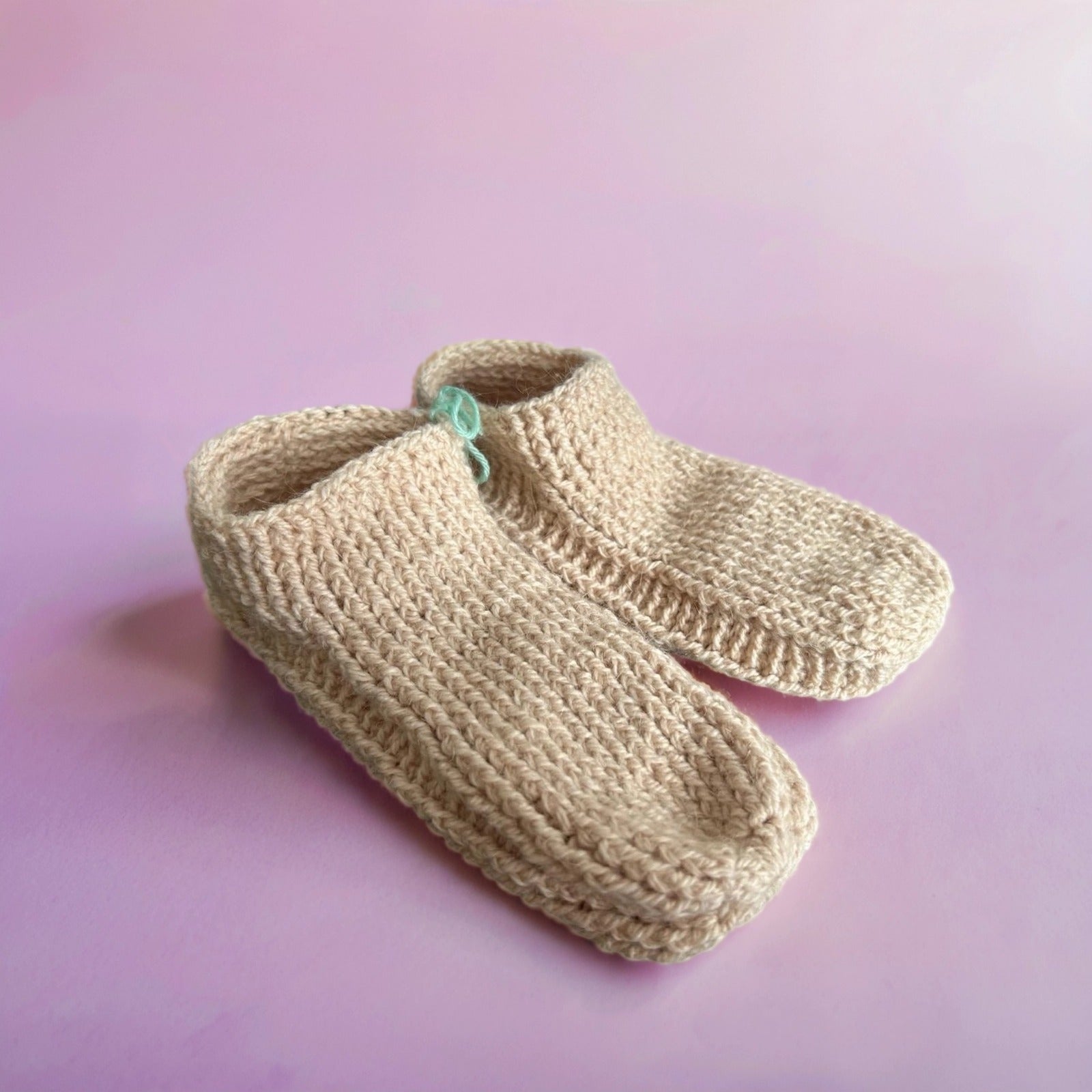 Weiche, gemütliche Hausschuh-Socken aus 55 % Merinowolle und 45 % Acryl. Merinowolle spendet natürliche Wärme und Komfort, Acryl sorgt für Strapazierfähigkeit und Formstabilität. Die angenehme Textur passt sich dem Fuß perfekt an, während die moderne Form die Socken zu einem stilvollen und praktischen Accessoire für Zuhause macht. Ideal als Geschenk oder für alle, die Wert auf Wärme und Gemütlichkeit legen. Jede Paar ist handgefertigt und einzigartig.