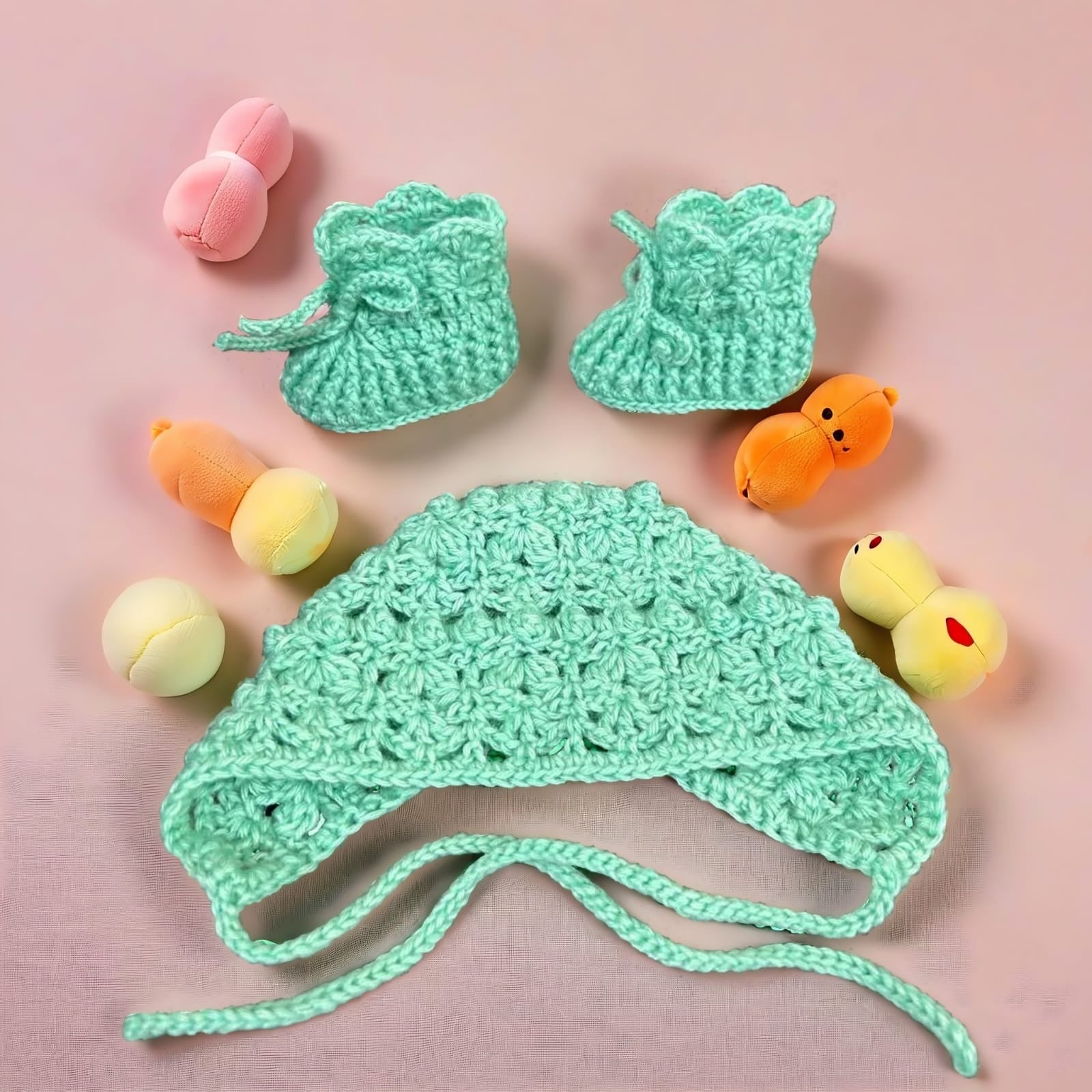 Детский комплект ручной работы из мягкой шерсти и роскошного шёлка для новорожденных от 0 до 3 месяцев, состоящий из шапочки и носочков в тон. Нежные бирюзовые и мятные тона подойдут как девочкам, так и мальчикам. Идеально подходит для прогулок, повседневной носки или очаровательных фотосессий. Теплый, приятный к телу и изготовленный с любовью – каждый комплект – уникальное изделие ручной работы.
