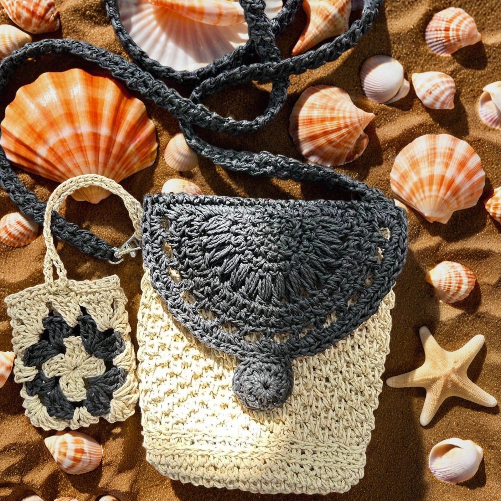 Мини-сумка ручной работы из натуральной рафии со стильным дизайном: бежевый низ, чёрный верх. Практичная застёжка на пуговицы и длинный ремешок позволяют удобно носить сумку на плече. Лёгкая, компактная и элегантная — идеально подходит для лета, путешествий или прогулок по городу. Каждая сумка — уникальное изделие ручной работы со своим неповторимым характером.