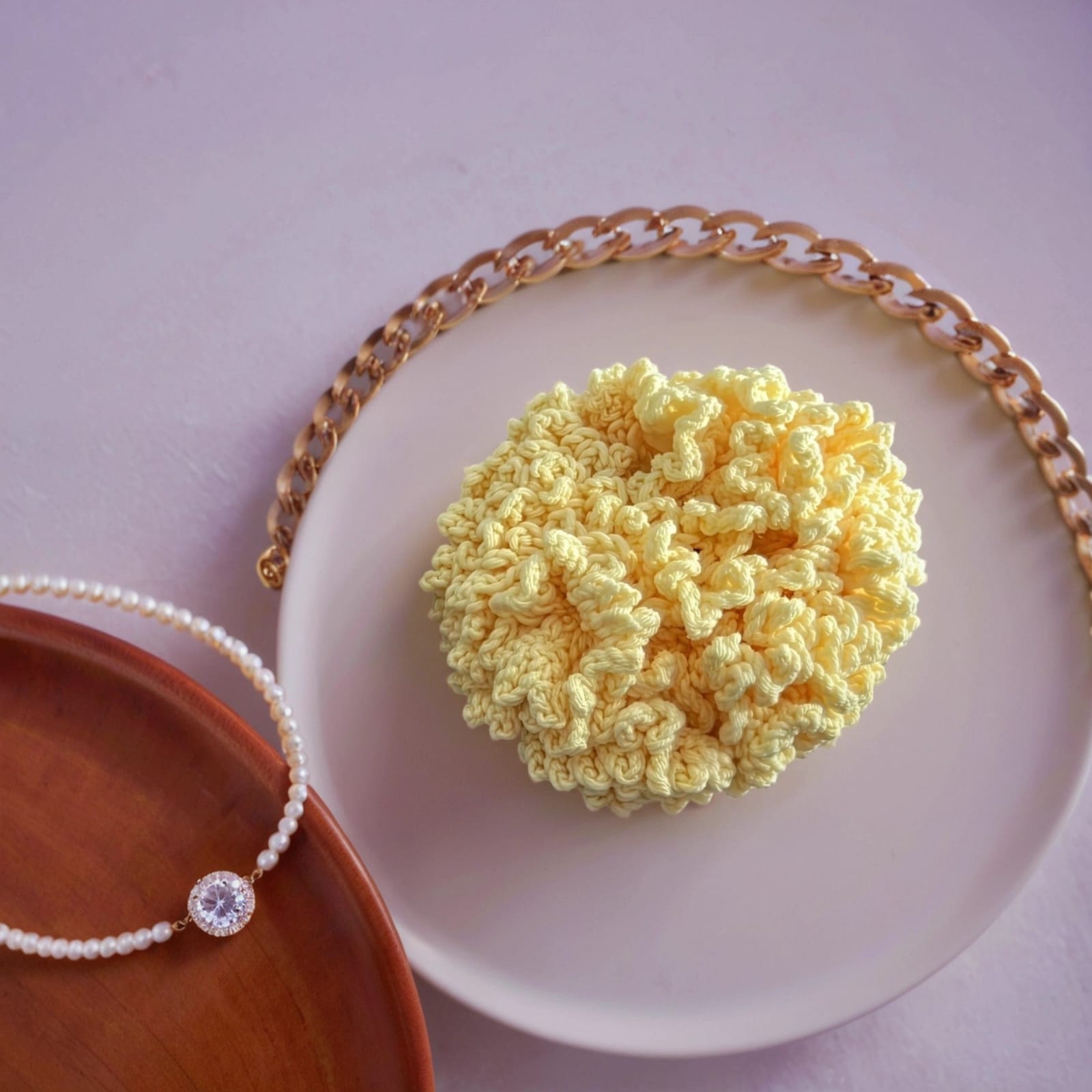 Эта женская резинка для волос, связанная крючком вручную из хлопка и акрила, обеспечивает комфорт и поддержку. Доступна в модных цветах: фиолетово-розовом, жёлтом и оливково-жёлтом. Идеально подходит для повседневной носки, добавив весёлый и стильный акцент в ваш образ. Идеальный аксессуар для отдыха, работы или особых случаев. Лёгкая, удобная и модная — незаменимая вещь для каждой женщины.